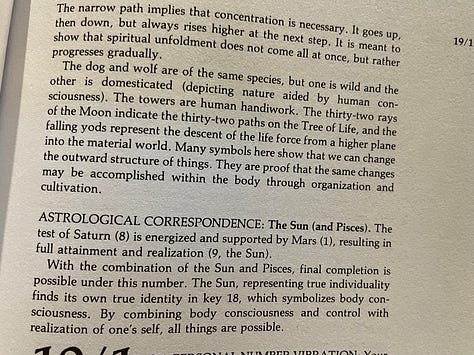 PS — I shared writings from Mystical Astrology According to Ibn Arabi and The Light of Egypt: The Science of the Soul and the Stars because there has been so much discussion recently on a return to religion and it is all written in the stars :) The Tarot breakdown is from Numerology and the Divine Triangle.